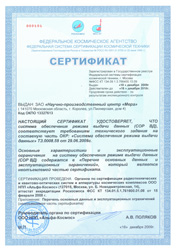 Сертификат о соответствии требованиям технического задания системы обеспечения выдачи данных |